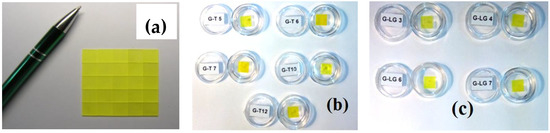 Composite scintillators based on garnet crystals and films (Figure 3) were grown by the LPE method in the Epitaxy Laboratory of Chair for Optoelectronic Materials in the Institute of Physics of Kazimierz Wielki University (UKW) in Bydgoszcz, Poland. Substrates for film deposition were produced by the Institute for Scintillation Materials (ISMA), Kharkiv, Ukraine (LuAG:Ce, LuAG:Sc, GAGG:Ce), CRYTUR Ltd. Company, Turnov, Czech Republic (LuAG:Pr), and Institute for Materials Research (IMR), Tohoku University, Sendai, Japan (GAGG:Ce).