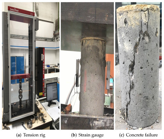The X-ray Computed Tomography (XCT) scanning was carried out prior to mechanical testing on one cylinder of each aggregate content at the Henry Moseley X-ray Imaging Facility, the University of Manchester with the Nikon XTH 225 (Nikon, Tokyo, Japan) custom bay (see Figure 2). The XCT scanner was set up with an exposure time of 1 s at an accelerating voltage of 220 kV and 111 m beam current. A 0.004 mm copper filter was also used. The stage rotated 360 degrees during each scan and 2000 projections with voxel size of 0.098 mm were collected. Software CT Pro (version 2.0) was used to process 2D images and reduce beam hardening. These images were further reconstructed into 3D models in AVISO software (version 2019) package for visualisation and phase segmentation.