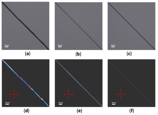 Setup 2: Images were acquired using a Nikon eclipse TE300 inverted microscope (Bergman Labora, Stockholm, Sweden) equipped with a DFK DFKNME33UX264 2.3 MP camera and a CFI Plan Fluor DL-10X objective (Bergman Labora, Stockholm, Sweden). Image capture was performed using the IC Measure software (2.0.0.286) from Imaging source. Setup 2 was used to acquire the POM images shown in Figure 2 and Figures S2–S7. Images acquired using setup 2 were used to generate the data in Figure S11.