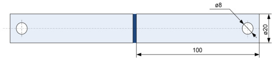 Experimental tests were performed on adhesive butt joints made with ø20 × 100 mm cylindrical specimens made of grade 1.0037 steel (EN 10025:2019–S235JR; Figure 2). The butt surfaces were pretreated per EN 13887:2005 (Structural adhesives—Guidelines for surface preparation of metals and plastics prior to adhesive bonding) with steady processing parameters to ensure the geometric repeatability of the surface pretreatment for all specimens.