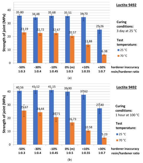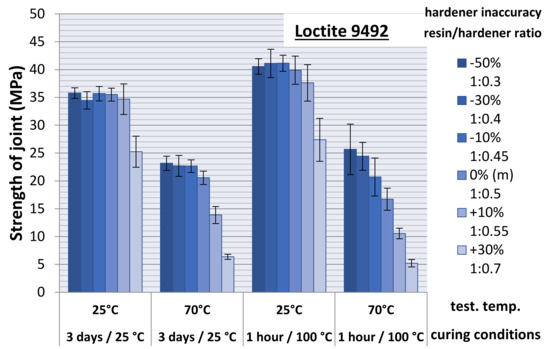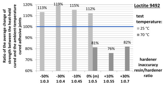 - Szabelski, J. Effect of incorrect mix ratio on strength of two component adhesive Butt-Joints tested at elevated temperature. MATEC Web Conf. 2018, 244, 01019. [Google Scholar] [CrossRef] [Green Version]