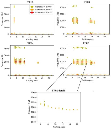- Chatter is the main cause of poor surface quality for the studied cases, as it causes roughness of at least 0.9 μm in the current setup. In absence of chatter, irrespective of the depth of cut employed, roughness is always below 0.6 μm, so it would comply with industry quality requirements. As roughness caused by the displacement of fixtures and relative movement of thin plates is more than 60% of the global roughness, there is still potential for roughness reduction regarding clamping conditions. In those cases, roughness is dominated by the tooth passing frequency, so machining conditions can be employed to handle it.
