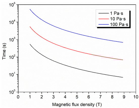 The effect of viscosity on alignment time as a function of magnetic flux density.