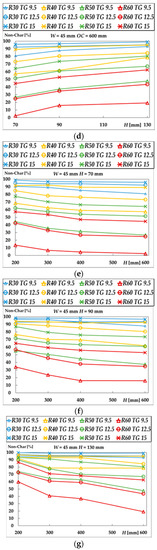 An increase in the cross-sectional thickness of the studs (H) results in a higher cavity thickness between both sides of the wall, which causes an increase in the fire resistance and a higher percentage of noncharred area.