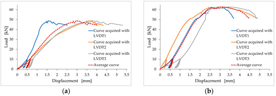 Conversely, the average of the values of three equidistant LVDTs provides the displacement for the points of the axis of the specimen (axial displacement), and is, therefore, not affected by rotation. Figure 5 shows the effect of rotation on the displacements for the TQ12 and LT9 specimens, which are the specimens for which the rotation of the top face was most evident. The comparison between the curves highlights the extent of the error committed if, instead of using three LVDTs, only the LVDT in Position 1 had been used for the TQ12 specimen, and only the LVDT2 or LVDT3 for the LT9 specimen.
