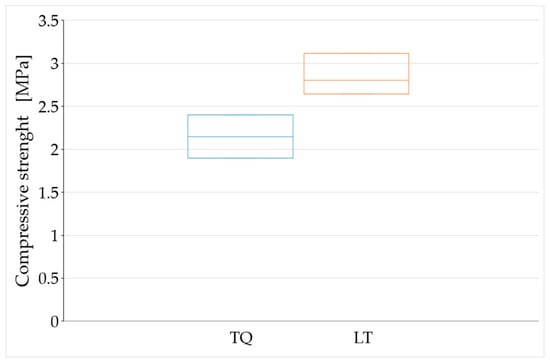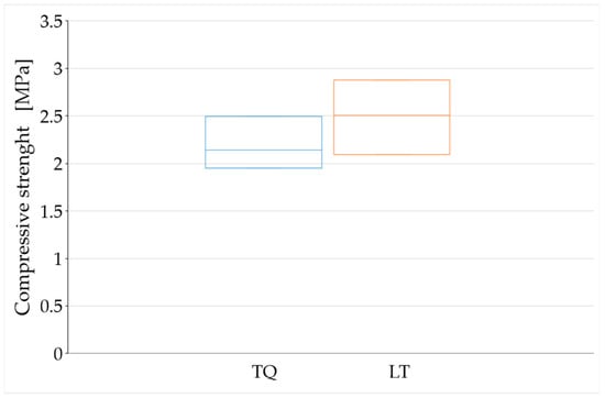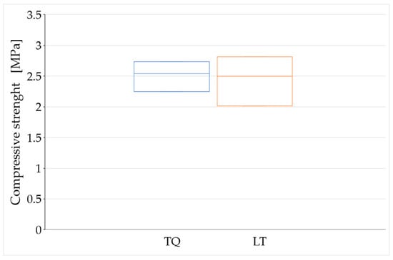 The average density after shrinkage was 1446.360 ± 38.806 kg/m3 for the TQ mix, and 1446.687 ± 35.686 kg/m3 for the LT mix, with the —the maximum percentage variance (in absolute value)—equal to 3.4% for the TQ mix, and to 3.3% for the LT mix (Table 4):