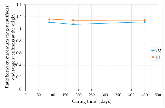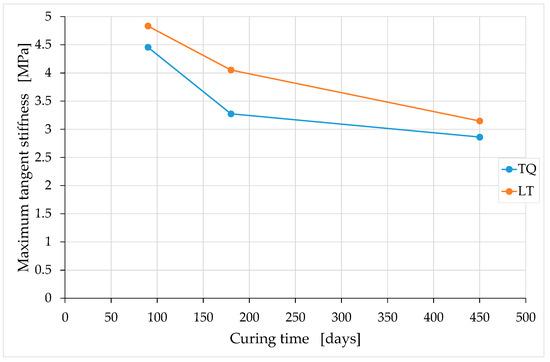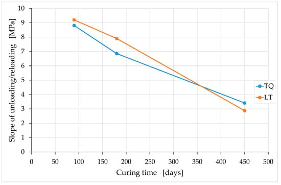 The compression tests took place at 90, 180, and 450 days of curing (Section 3.1) in order to verify how the mechanical properties vary over time. The relatively long observation period—rather rare in the scientific literature, as far as the study of earthen materials is concerned—allowed us to highlight some unexpected trends over time in the stiffness and behavior under cyclic loads. In particular, the effect of carbonation on earthen mixtures seems to have characteristics similar to those of the vulcanization of natural rubber (Section 4.2). This unexpected result, not highlighted in any previous experimental campaigns, can have several interesting repercussions for the technical practice of the 3D printing of earthen materials for construction purposes, if confirmed over longer periods of observation.