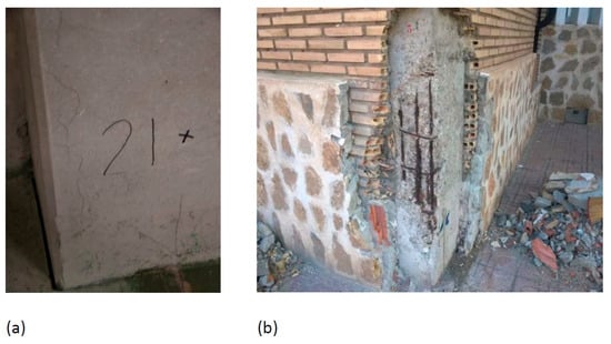 All the buildings included in this research had suffered corrosion processes in the reinforcements of some of their structural elements that had caused pathologies that ended their useful life and required a repair intervention []. The ten buildings are located in the provinces of Alicante and Murcia (south-east Spain), at the following addresses: 1D Calle General Pastor, 19, Dolores; 2G Calle San Pedro, 38, Guardamar del Segura; 3T Calle Ulpiano,71, Torrevieja; 4T Avenida de los Holandeses, Solmar building, Torrevieja; 5T Avenida de Inglaterra, 31, Maravillas building, Torrevieja; 6D Avenida de Crevillente, 4, Dolores; 7R Plaza de Héroes de Africa, Rojales; 8A Avenida de La Peseta, 19, Alicante; 9M Calle Iberia, 33, Building Torre Brisa, Aguilas; 10E Avenida de San Bartolomé de Tirajana, 8, Elche.