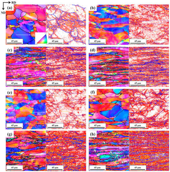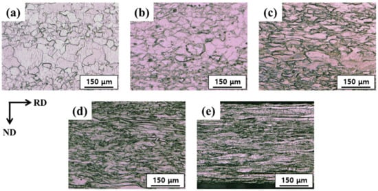 3.2. Microstructure Evolution during Rolling