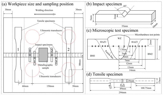 However, the RHA steel has high carbon equivalent and poor weldability, so the RHA steel welds are prone to cracking and incomplete penetration [2]. Moreover, due to the influence of welding heat transfer, the grain state of each region of a welded joint is poor. These problems seriously affect the welding performance and reduce the service reliability of weapons, thus becoming the difficulties in the research of RHA welding performance. At present, the research on RHA welding performance control is mainly focused on the optimization of process parameters and fixtures [3,4,5,6,7]. However, different welding conditions and fixtures have different effects on the welding performance, so a good unified control method is currently unavailable.