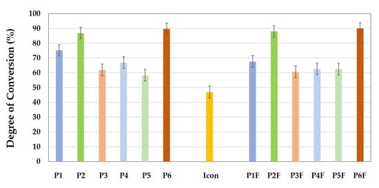 3.1. Degree of Conversion (DC)