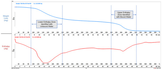 - Unbound water content and enthalpy, based on lower temperature enthalpy and weight loss; and