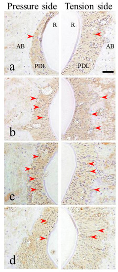 - Matsuda, H.; Harada, T.; Muraoka, R.; Tomoda, M.; Okafuji, N. Immunohistochemical observation of osterix appearing in the mouse orthodontic periodontal tissues. J. Hard Tissue Biol. 2011, 20, 283–288. [Google Scholar] [CrossRef][Green Version]