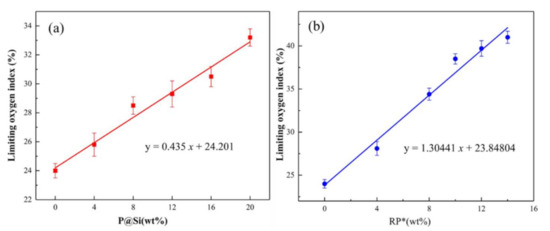 Limiting oxygen index of the (a) PA66/PPO–P@Si and (b) PA66/PPO–RP* composites.