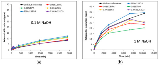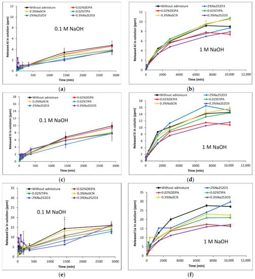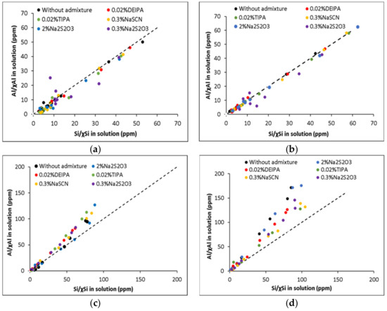 - Chappex, T.; Scrivener, K.L. The Effect of Aluminum in Solution on the Dissolution of Amorphous Silica and its Relation to Cementitious Systems. J. Am. Ceram. Soc. 2012, 96, 592–597. [Google Scholar] [CrossRef]