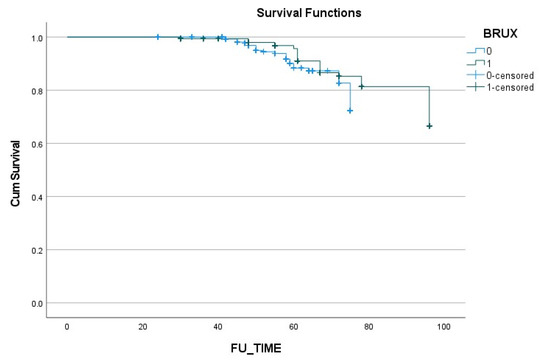 The descriptive statistics of the parameters (i.e., age, follow-up time, complications, and survival), as well as the statistical analysis, employed IBM SPSS Statistics version 23.0 (SPSS, Inc. Chicago, IL, USA). Differences between survival as well as the complications rate in the bruxer vs. the non-bruxer groups were determined by Student’s t-test. Fisher’s exact test was used to compare the type of complication between the two independent groups. The survival and complication rates were also compared using the Kaplan–Meier survival analysis method. The degree of statistical significance was considered as p < 0.05.
