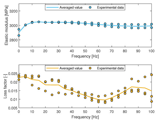The results in terms of the elastic modulus and the loss factor are shown in Figure 4.