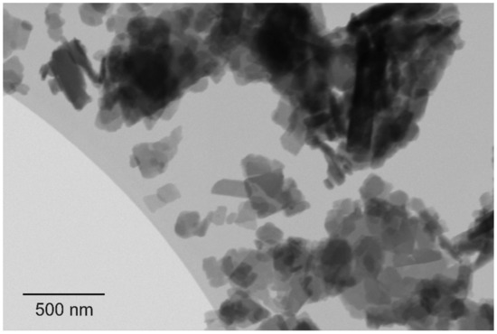 Scanning transmission electron microscopy image, showing primary particles of indigo with platelet morphology [46].