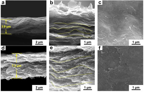 Figure 3c), due to the compact stacking of the 2D nanosheets. For hybrid membranes, 1D MWCNT uniformly intercalates between the 2D Ti