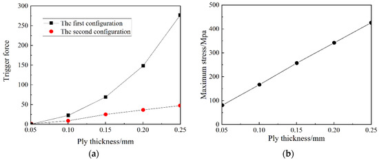 - Betts, D.N.; Kim, H.A.; Bowen, C.R. Optimization of stiffness characteristics for the design of bistable composite laminates. AIAA J. 2012, 50, 2211–2218. [Google Scholar] [CrossRef]