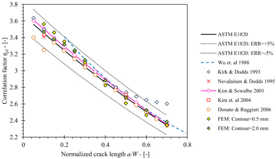Comparison of ηpl values obtained from the developed FEM framework with the values published in the literature and standard ASTM E1820.