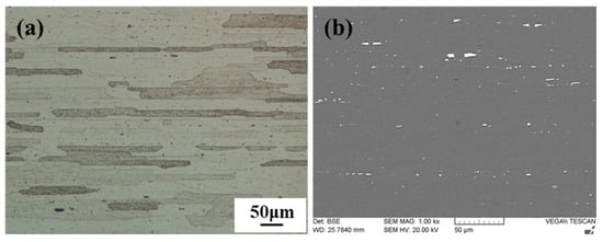 For a precipitation strengthening Al alloy, the mechanical properties have a close relation to the grain size and precipitated phase particles []. In the base material, there is the presence of a large quantity of precipitated phase, and the strength and elongation of the base material present a higher value. For the NZ, the fine equiaxed grains can contribute to a high property. However, most of the precipitated phase particles are dissolved in the NZ during FSW, as observed in Figure 5. The active contribution from the fine grains to tensile properties cannot recover the obviously negative impact of the dissolution of precipitated phase particles. In consequence, the tensile properties of all FSW joints are lower than those of the base material. On the other hand, there exist significant differences in the grain size and reprecipitated phase distribution of different FSW joints produced by different welding speeds. Using a 150 mm/min welding speed, the positive contribution from finer equiaxed grains and more reprecipitated particles into the NZ can improve the mechanical properties of FSW joints. However, it is an opposite result derived from the evidently negative effect of coarse grain and reprecipitated phase particles in the NZ for the joints fabricated at 180 mm/min.