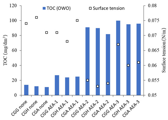 There was no difference in both the TOC and surface tension of cements with different sulfate-bearing materials. Thus, gypsum dehydration did not directly influence either the total organic carbon content or the surface tension.