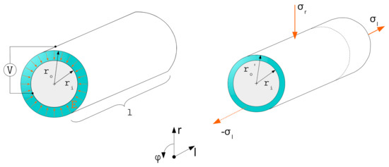 To give an overview of the presented approaches for more complex geometries, a cylindrical geometry representing a fiber actuator is considered and the stress states according to the presented methods are calculated. We make use of the following additional assumptions: