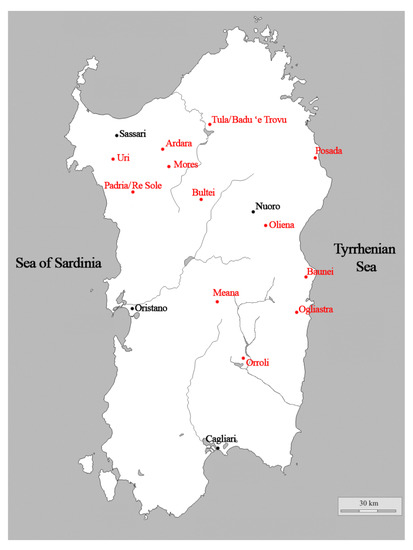 - Taramelli, A. Note di preistoria sarda. Bull. Paletnologia Ital. 1912, VIII, 357–360. [Google Scholar]