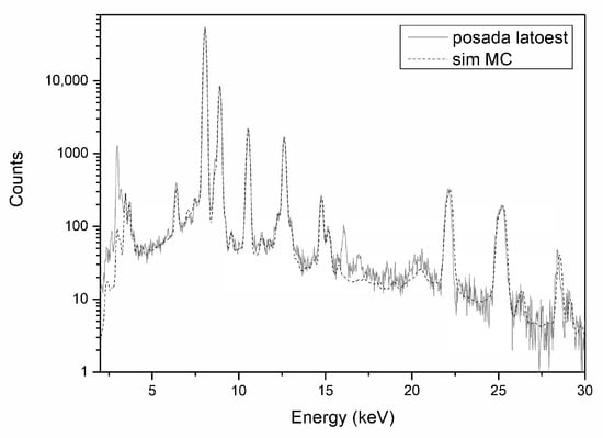 - Schoonjans, T.; Vincze, L.; Solé, V.A.; Sanchez del Rio, M.; Brondeel, P.; Silversmit, G.; Appel, K.; Ferrero, C. A general Monte Carlo simulation of energy dispersive X-ray fluorescence spectrometers—Part 5: Polarized radiation, stratified samples, cascade effects, M-lines. Spectrochim. Acta Part B At. Spectrosc. 2012, 70, 10–23. [Google Scholar] [CrossRef]