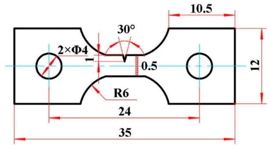 Sketch of shape and dimension of in-situ tensile test specimen (unit: mm).