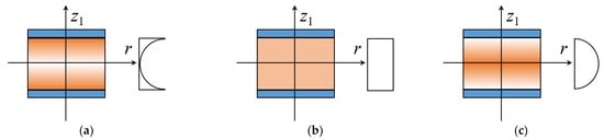 As given in Figure 2, three porosity distributions of the core are considered. Figure 2a plots the positive trigonometric porosity distribution XP, where more pores are set around the surfaces of the annular plate and less pores are in the middle plane. Based on the open-cell scheme [33], the effective material properties are