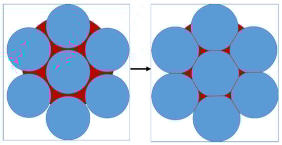 where the Pout is the external pressure, is the liquid/vapor interfacial energy, and r is the radius of the liquid meniscus. The pressure in the liquid is always lower than the external pressure. Therefore, the particles are under compression, which promotes the formation of a sintering neck. As the sintering temperature increases from 580 °C to 620 °C (liquid phase fraction increases), the amount of liquid phase in the contact area increases (Figure 9c) and the atomic diffusion process is enhanced, which further promotes the growth of the sintering neck.
