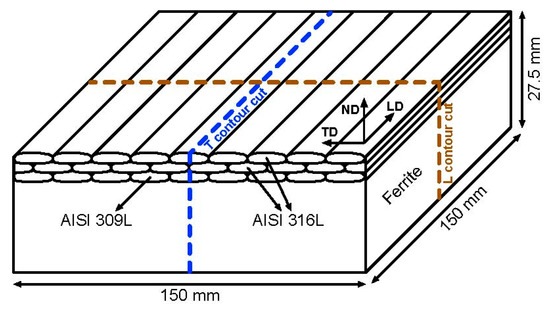 An attempt to study residual stress profiles in welds using an artificial neural network approach was made in [15]. Although this scattering of results is often attributed to the texture of the dendrites, it has been shown that texture does not play a key role in austenitic steel stress analysis [9]. The contour method established by Prime [16] is an excellent alternative/complementary method to diffraction methods for residual stresses assessments. This method consists of measuring surface deformations resulting from stress relaxation induced by a cutting plane and is based on the Bueckner’s elastic superposition principle. This method allows drawing 2D maps of residual stresses perpendicular to the cutting plane. The contour and neutron diffraction methods rely on completely different assumptions. Since the contour method premises on macroscopic mechanical relaxation, it is, therefore, indifferent to material features on the atomic level. Zhang et al. [17] showed that the contour method is very suitable for evaluating residual stresses in welds at high thicknesses.