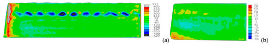 AW residual stress maps for the (a) longitudinal and (b) transverse directions.