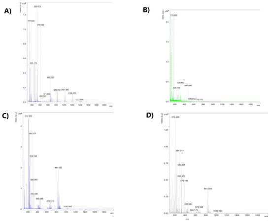 The MALDI-TOF-MS spectra were recorded on the Bruker Biflex III company, (Branch Überlingen, Germany). 2,5-Dihydroxybenzoic acid (DHB) and α-cyano-4-hydroxycinnamic acid (CCA) were used as a matrix.