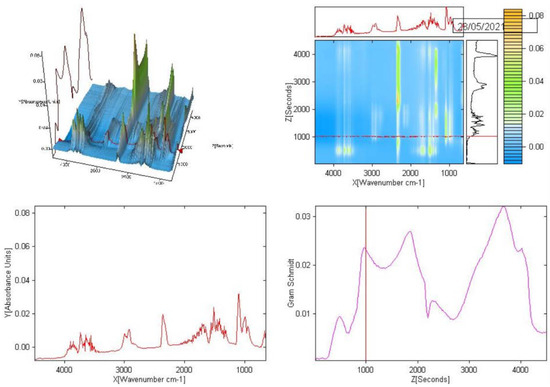 3D spectrum obtained by TG-FTIR technique for an oligomer sample synthesized using oxovanadium(IV) dipicolinate complex compound with 4,4′-dimethoxy-2,2′-bipyridyl.