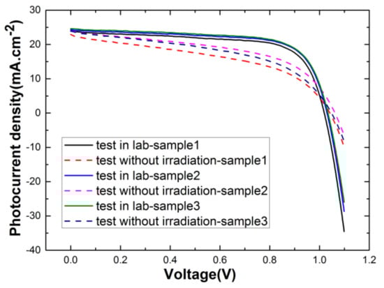 J–V curves of control groups were tested in the lab and natural environment without irradiation.