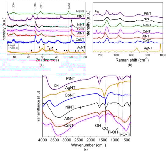 - Carmo, J.V.C.d.; Lima, C.L.; Mota, G.; Santos, A.M.S.; Costa, L.N.; Ghosh, A.; Viana, B.C.; Silva, M.; Soares, J.M.; Tehuacanero-Cuapa, S.; et al. Effects of the Incorporation of Distinct Cations in Titanate Nanotubes on the Catalytic Activity in NOx Conversion. Materials 2021, 14, 2181. [Google Scholar] [CrossRef] [PubMed]