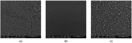 SEM micrographs of a 4 nm metallic (mass equivalent): (a)—Au, (b)—Al, (c)—Ag.