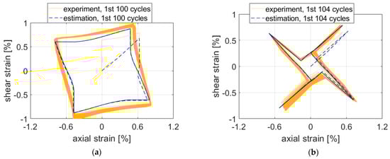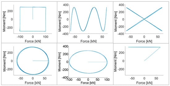Path Square was achieved by multiaxial loading by trapezoidal waveforms of force and moment signals with a mutual phase shift of 90°. The common load frequency for the entire test was 0.0417 Hz. Other authors used a similar path to validate their estimates [7,9,10,11,12,13,14,15,16].