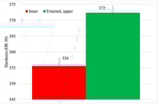 Hardness values in the inner and external part of the can.