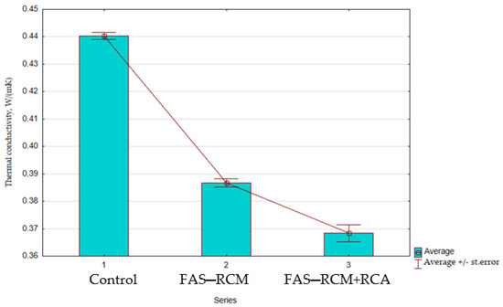 - Concrete with waste materials had a lower thermal conductivity coefficient than standard composites because of the waste materials (FAS–RCM and RCA).