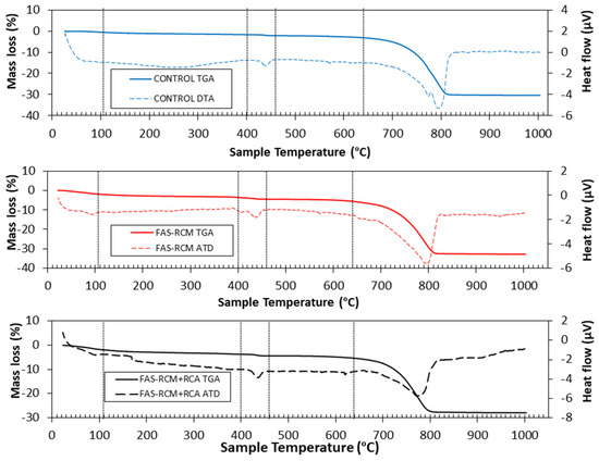 - Series 3: 30% of the NA (>4 mm) was replaced with recycled aggregate based on dolomite, and an additive was introduced in the form of a mix of FAS–RCM, where FAS and RCM each accounted for 50% of the weight of the additive.