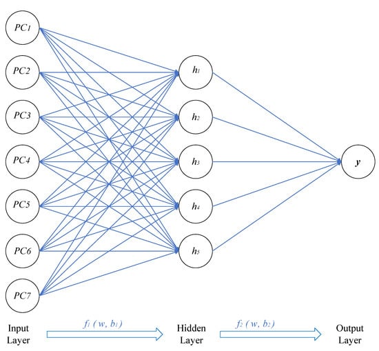 Figure 6. Back-propagation neural network (PC: principal component; h: hidden neuron; y: output).