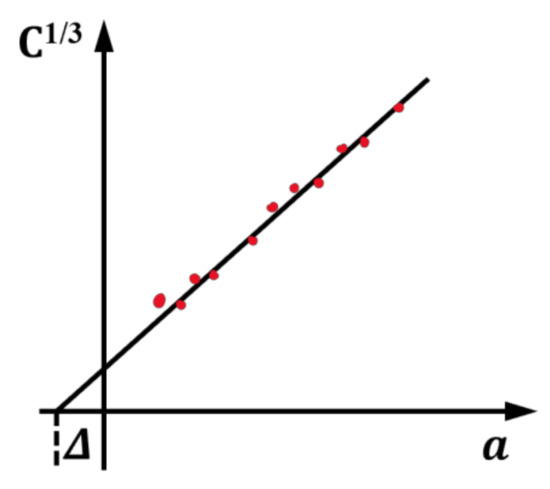 where aeff is the equivalent crack length, and is the correction value of crack length. The theory treats DCB as a slightly longer layer , where Δ can be determined by fitting the flexibility cube root C1/3 of the delamination length a during the test (Figure 3).