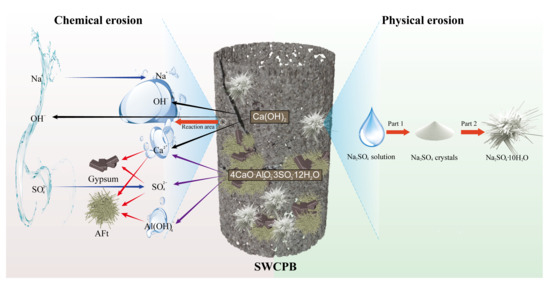 As shown in Figure 14, the physical erosion of SWCPB materials by sodium sulphate was divided into two main processes.