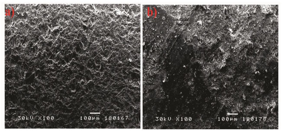 The texture of the reference concrete is compact and homogeneous (Figure 10a). The texture of the WG concrete (Figure 10b) is also homogeneous, with the surface completely flat across most of the sample.