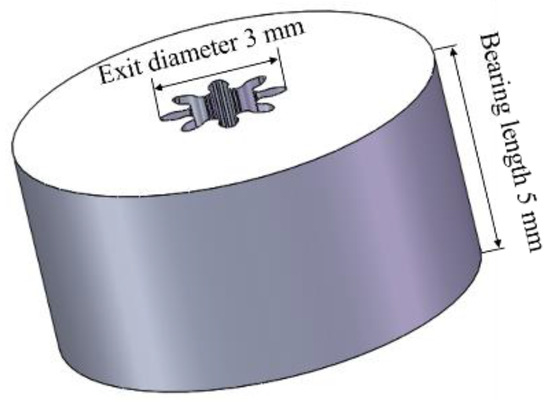 The Ti-6Al-4V micro-gears can be successfully fabricated by hot extrusion under thermal-mechanical coupled fields. As Figure 3 shows, the micro-gear had the following key characteristics: eight teeth, a module of 0.3 mm, a tooth thickness of 0.471 mm, and a tooth depth of 0.675 mm. The tooth profile of the formed micro-gear was completely filled and clear, demonstrating that applying the technique to manufacture Ti-6Al-4V micro-gears is feasible. Additionally, the curvature in the micro-extrusion significantly affected the final extrudates’ geometry, which was caused by the grain size, grain boundary, grain orientation, and bearing length. For all conditions, the curvature of the micro-parts could be eliminated when the bearing length was greater than the exit diameter [28]. The extruded micro-gear rod was straightened in the experiments because the bearing length was approximately 1.6 times the exit diameter (Figure 4).
