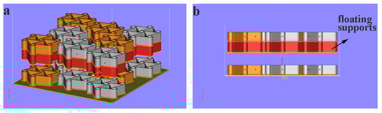 Floating parts production in EBM: (a) iso view and (b) front view.